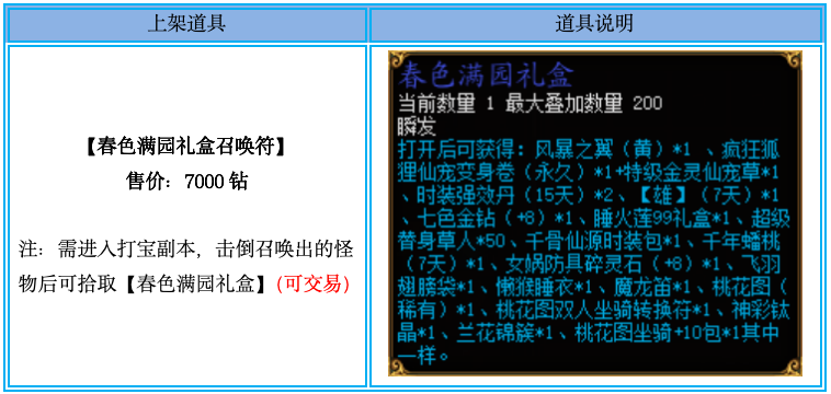 活动期间,钻石商城将限时上架【春色满园礼盒召唤符】,切勿错失良机。