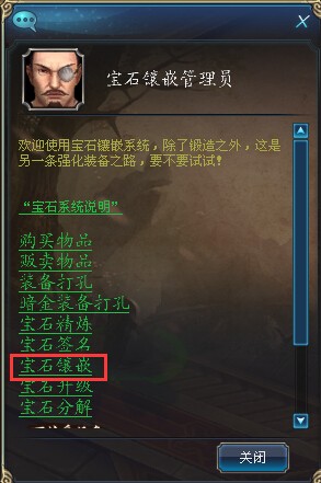 方法一:找到宝石镶嵌管理员,与其对话,选择【宝石镶嵌】,即可打开装备打孔界面。